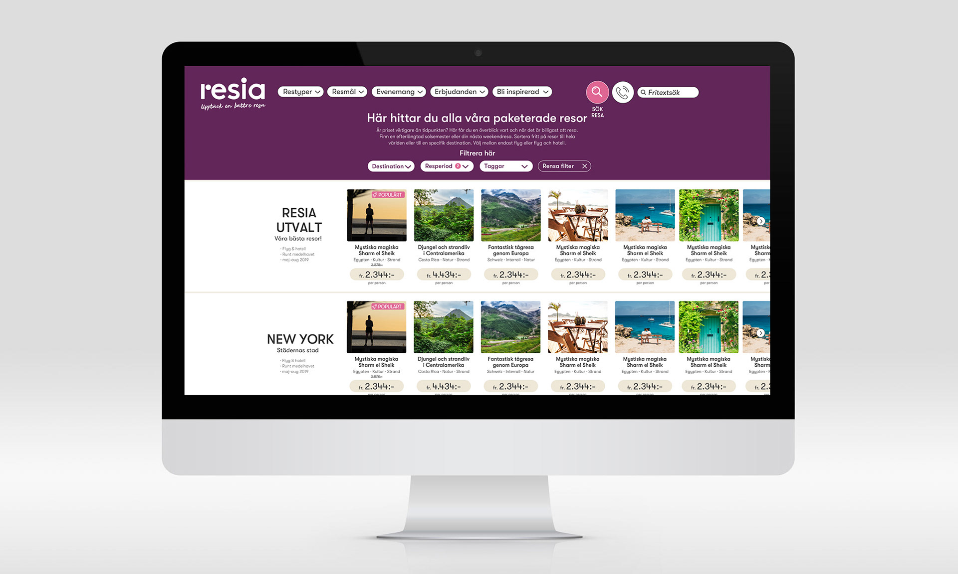 Ansvarig för utseendet av bokningsmotorn på resia.se. Ansvarig för funktion och design av paketerade produkter på resia.se. Utseende, innehåll och taggningsfunktion med mera.